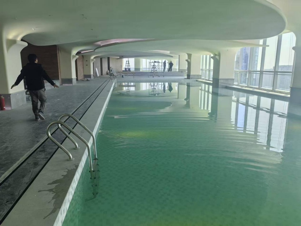 တူညီသောအရှေ့တိုင်းအလှဖန်တီးမှုပုံစံအတိုင်း၊ ရေကူးကန်ဧရိယာသည် Xiangjiang မြစ်နှင့် Orange Isle ၏တိုက်ရိုက်ရှုခင်းများနှင့်အတူ နံရံအပြည့် မြင်ကွင်းကျယ်ကြမ်းပြင်မှမျက်နှာကျက်ပြတင်းပေါက်များပါရှိသည်။ ညဘက်တွင် ဧည့်သည်များသည် Orange Isle ပေါ်ရှိ မြို့ပြမီးများနှင့် မီးရှူးမီးပန်းများကို ခံစားနိုင်ပြီး ၎င်းသည် ဟိုတယ်၏ လူကြိုက်များသော ဓာတ်ပုံနေရာများထဲမှ တစ်ခုဖြစ်လာသည်။